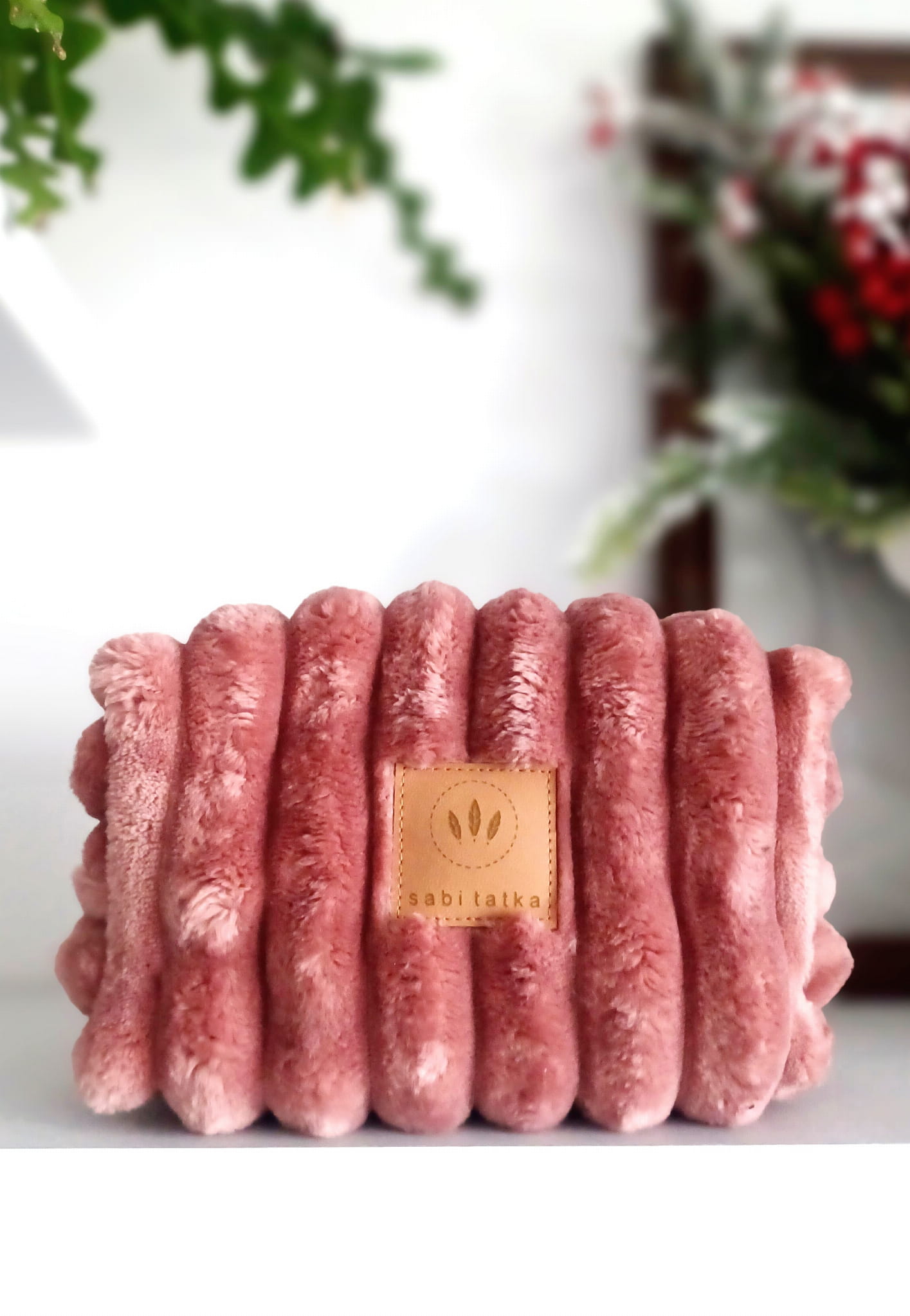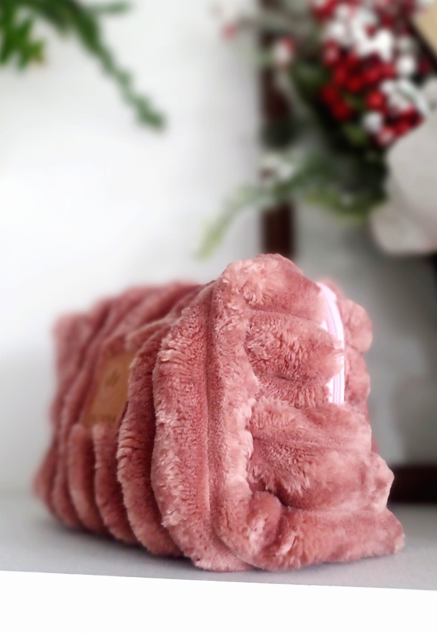 Średniej wielkości kosmetyczka z grubej futerkowej tkaniny.