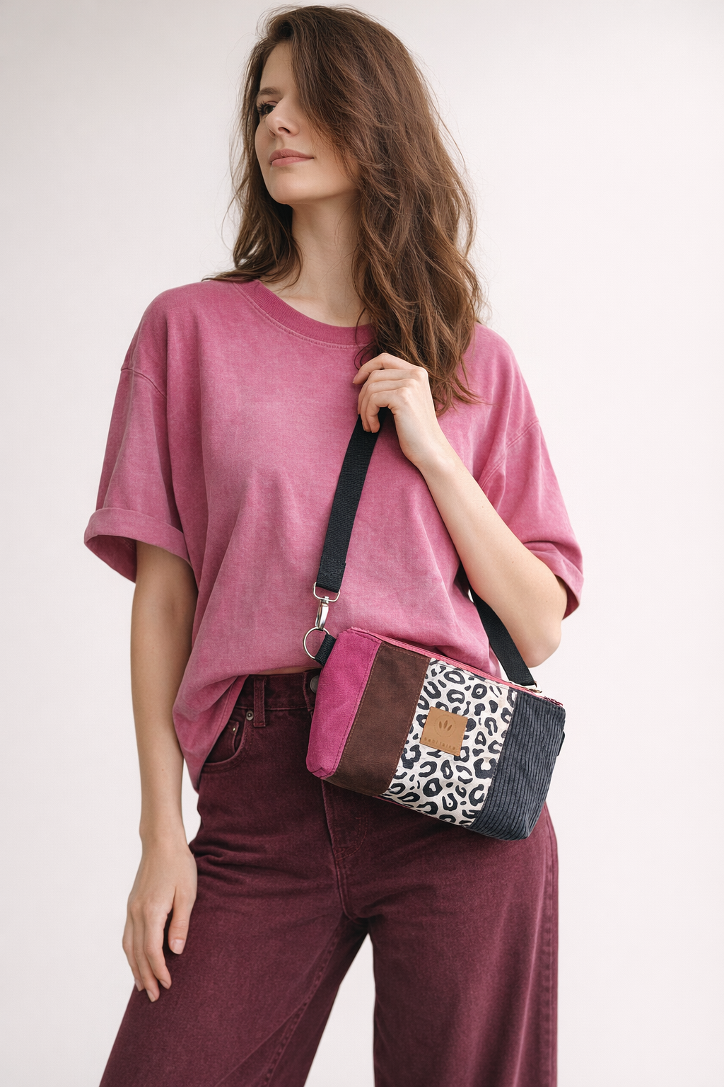 Pomieści niezbędne drobiazgi takie jak klucze, telefon, portfel czy szminkę ale również etui z okularami.