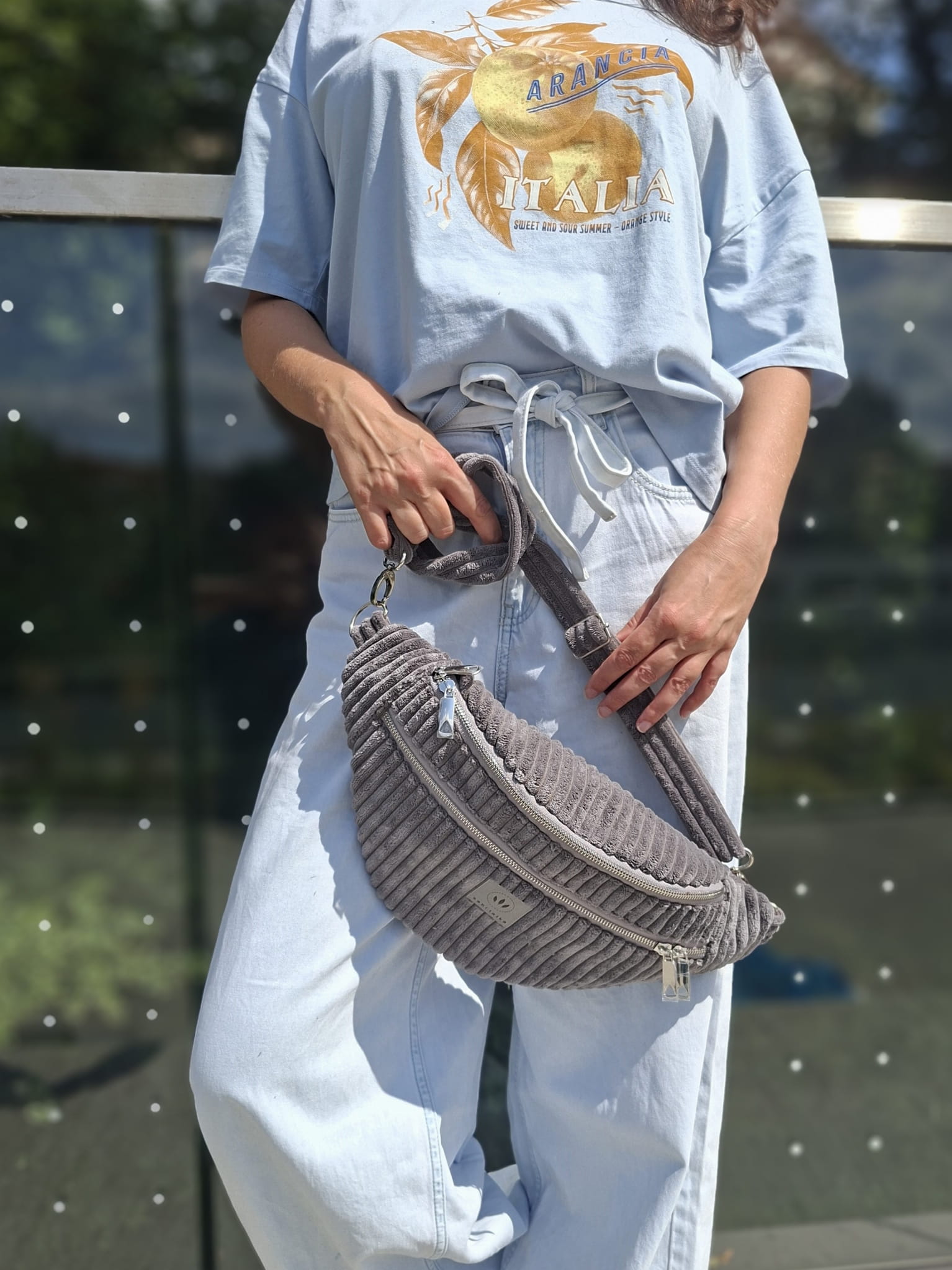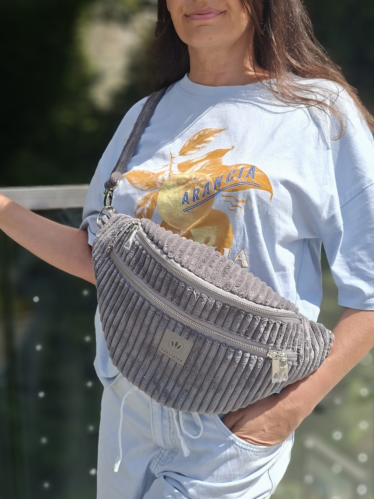 Bardzo duża nerka torebka damska ze sztruksu tapicerskiego