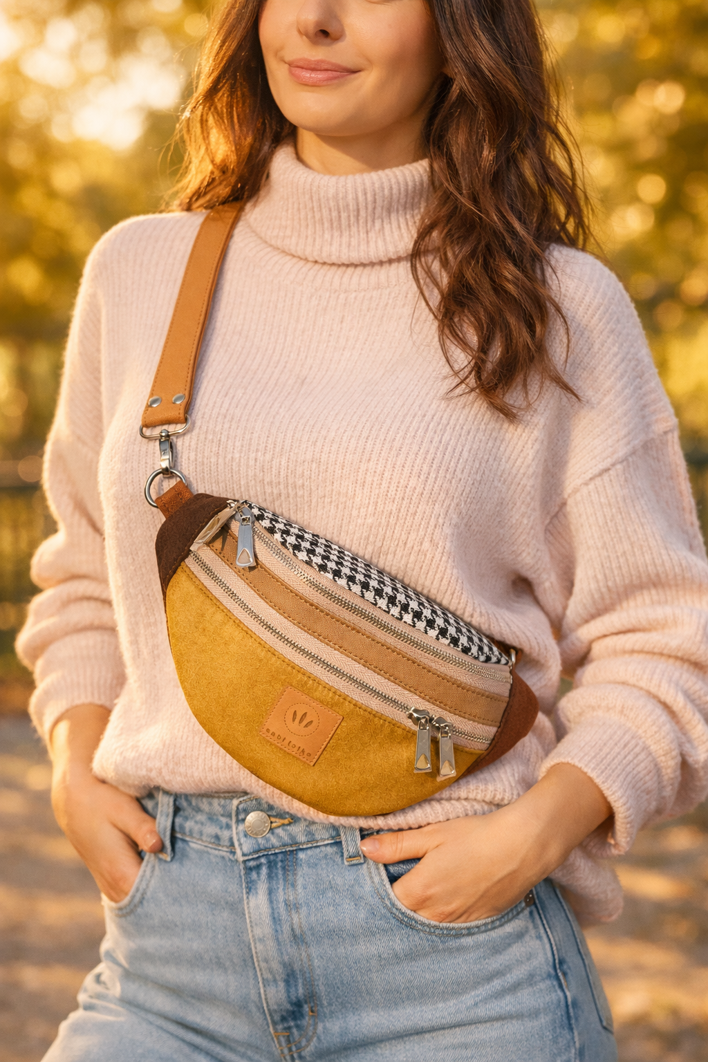 Saszetka pomieści wszystkie niezbędne drobiazgi takie jak klucze, telefon, mały portfel czy szminkę. Zmieści się nawet mały aparat foto.