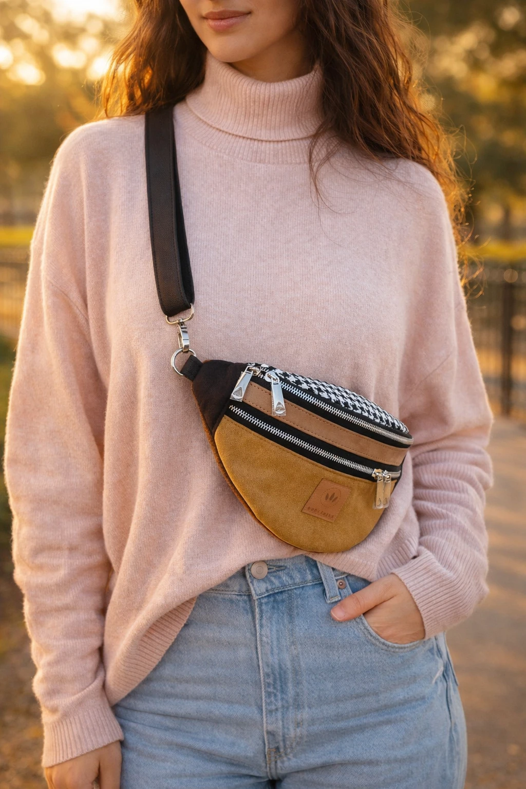 Saszetka pomieści wszystkie niezbędne drobiazgi takie jak klucze, telefon, mały portfel czy szminkę. Zmieści się nawet mały aparat foto.