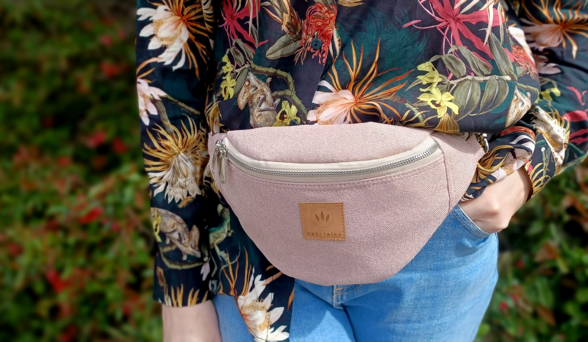 Nerka saszetka damska z 'lnianej' plecionki Różowa