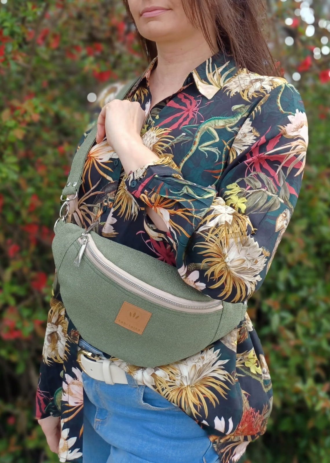 Nerka saszetka damska z 'lnianej' plecionki Zielona