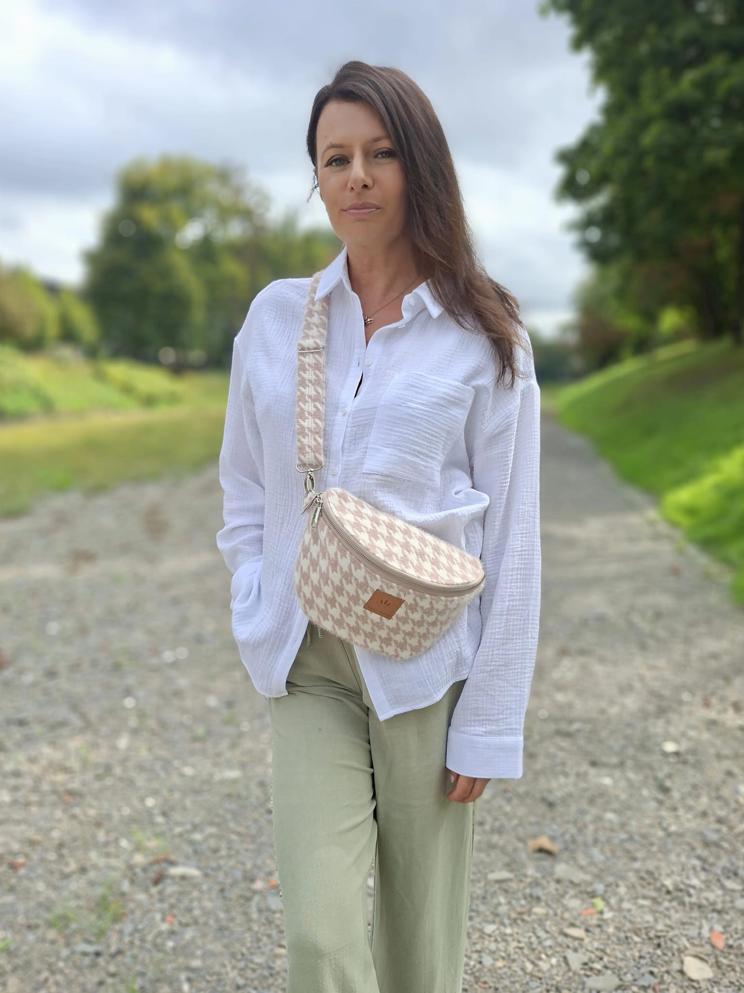 Wygodny, regulowany pasek długości max 120 cm, obwód minimalny do noszenia na biodrze ok 92 cm (możliwość uszycia paska na inny obwód - informację proszę podać w uwagach do zamówienia)