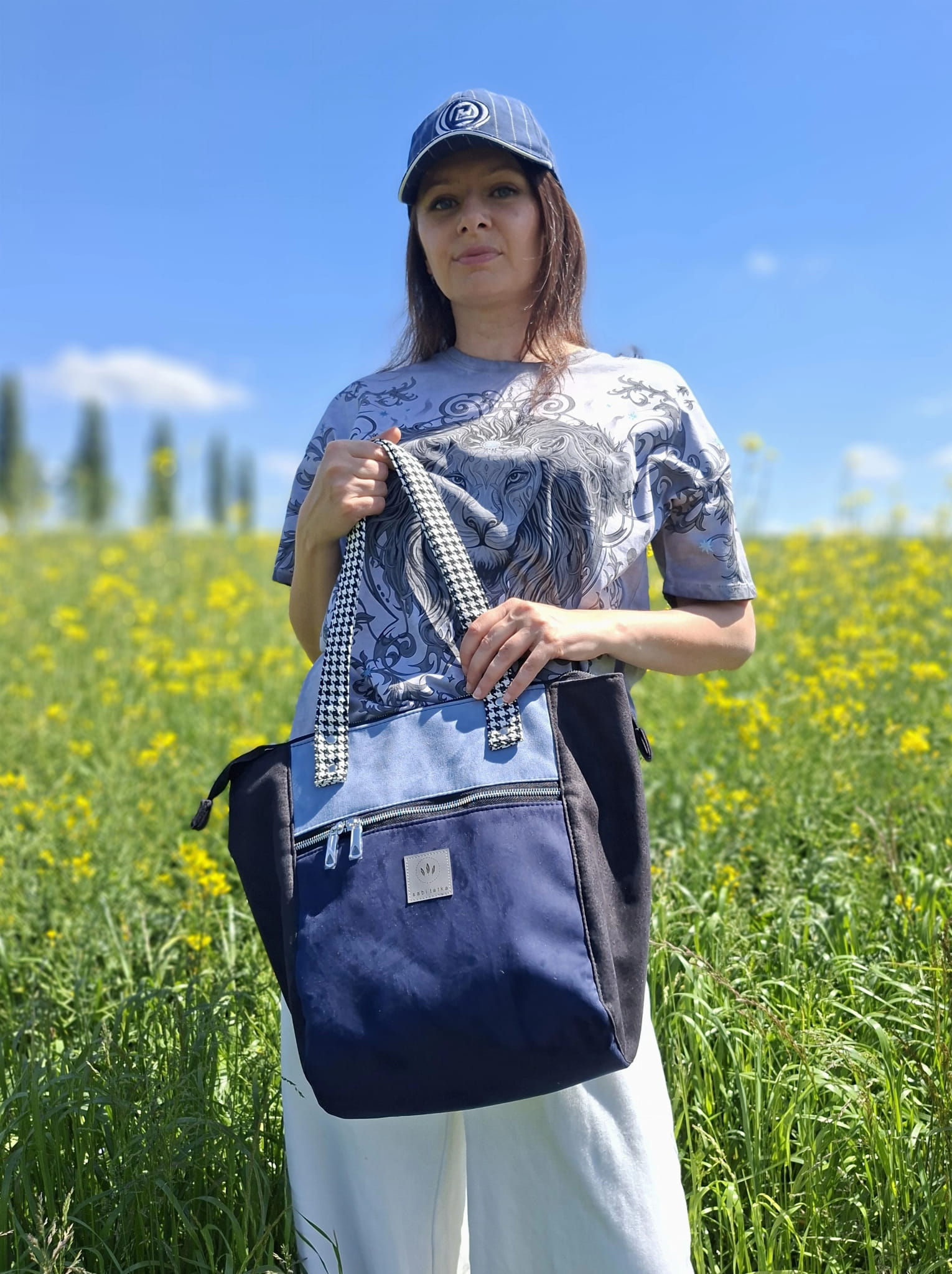 Niebiesko czarna torba Shopper z nubuku Idaho