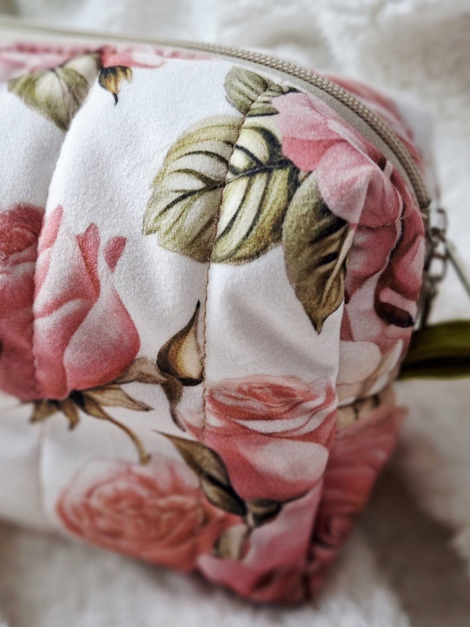 Pikowana kosmetyczka XL z weluru w Pastelowe Róże