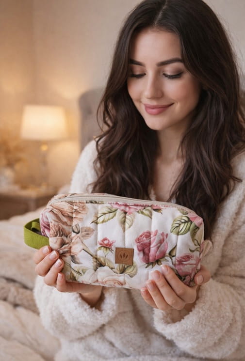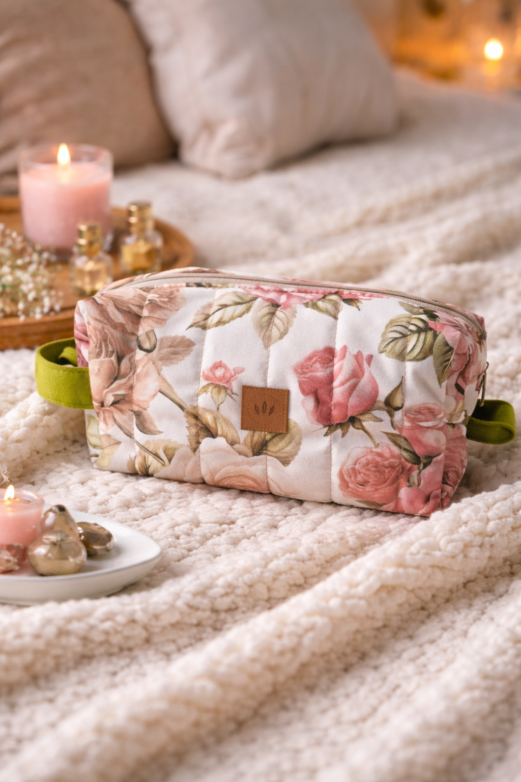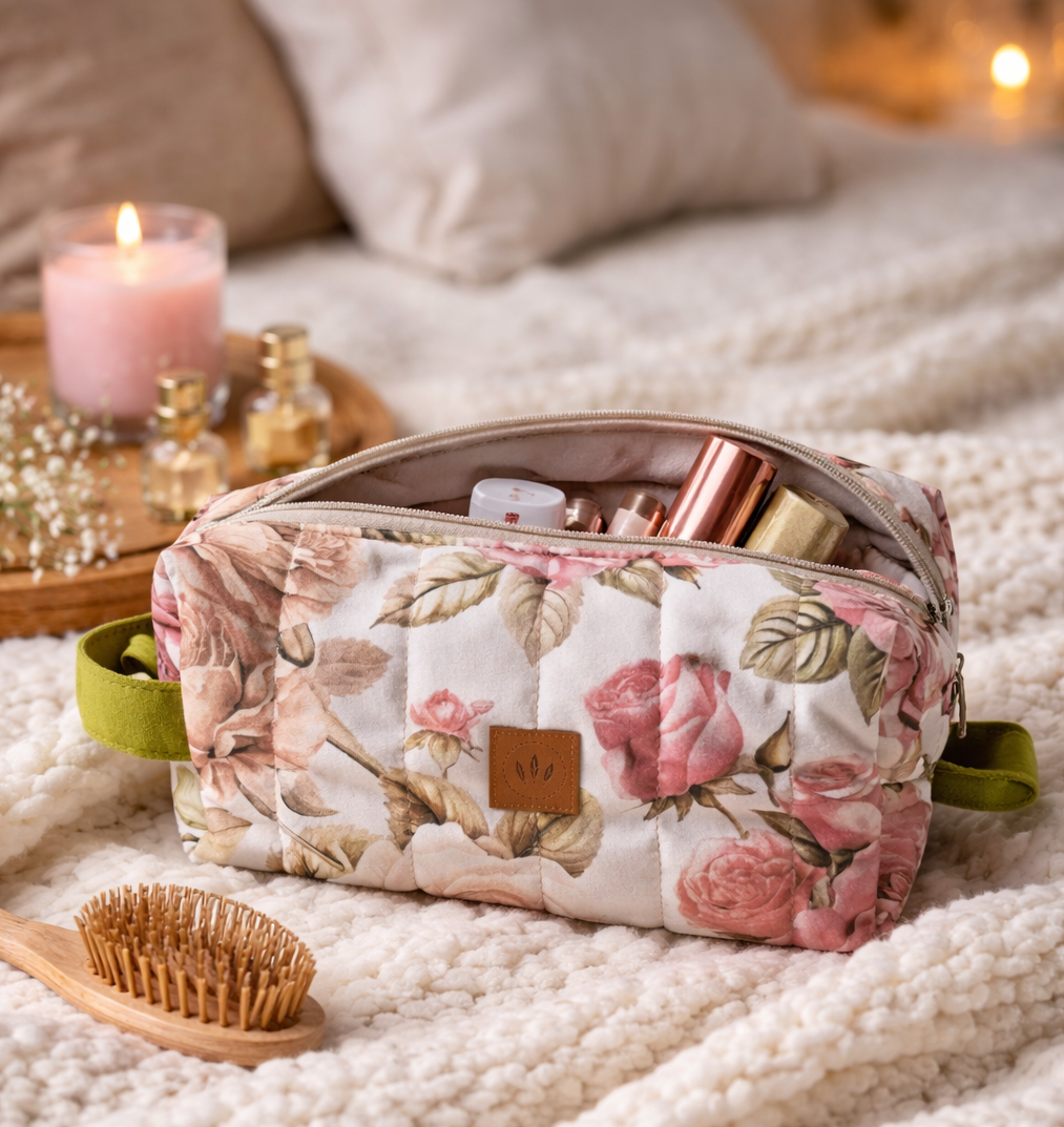 Poznaj wyjątkową kosmetyczkę w romantyczny, kwiatowy wzór, stworzoną z myślą o kobietach, które cenią estetykę, funkcjonalność i przytulny styl. To idealny dodatek do codziennej pielęgnacji, podróży lub jako piękny prezent. Kosmetyczka pięknie prezentuje się w przytulnych wnętrzach, sypialni czy łazience, dodając codziennym rytuałom odrobiny luksusu i ciepła. Bo piękne rzeczy warto mieć zawsze pod ręką