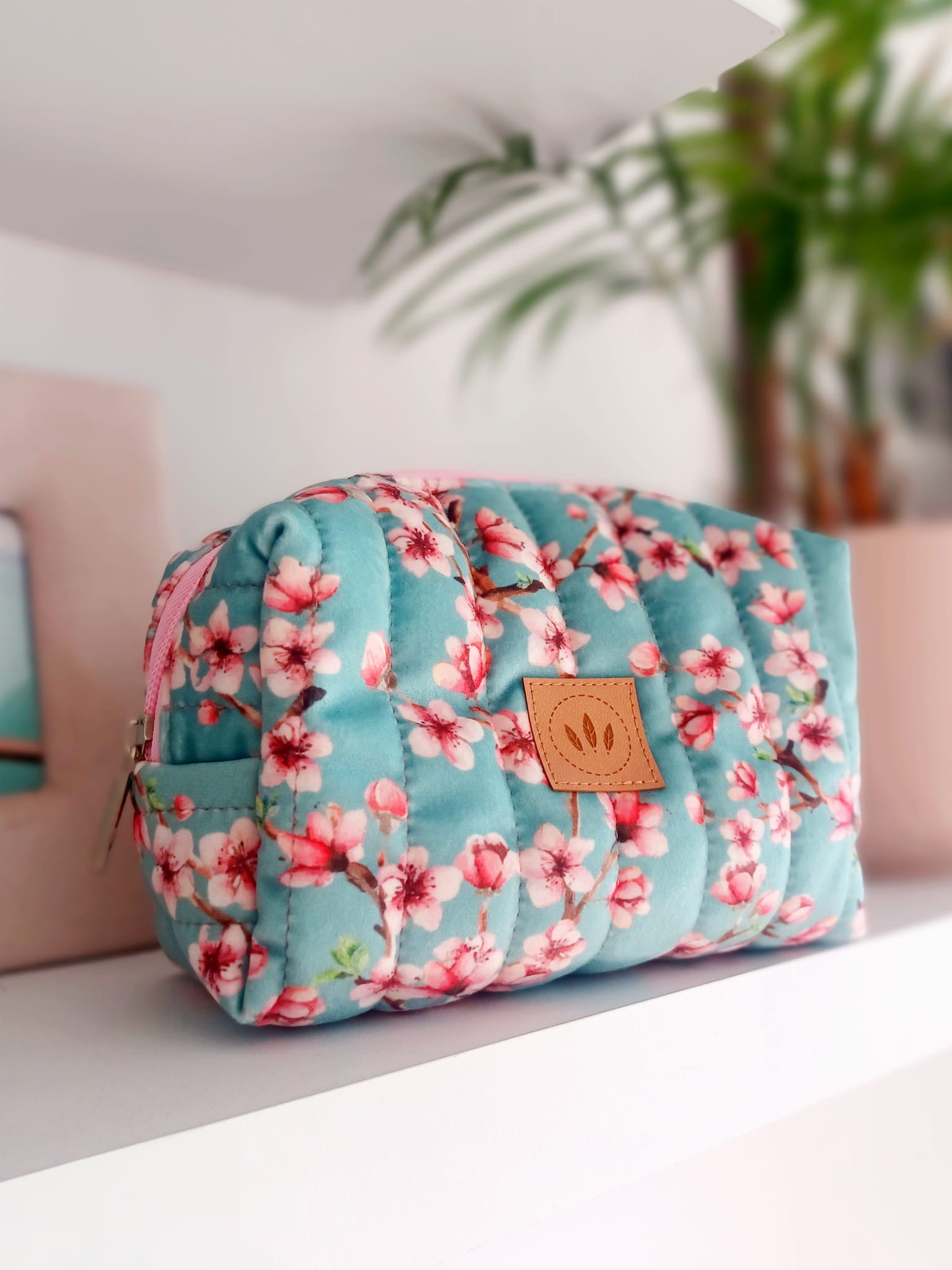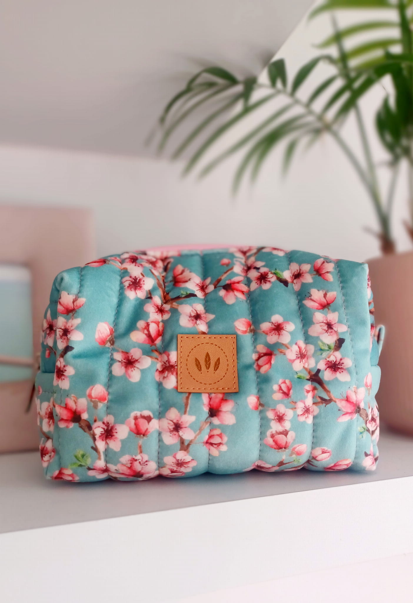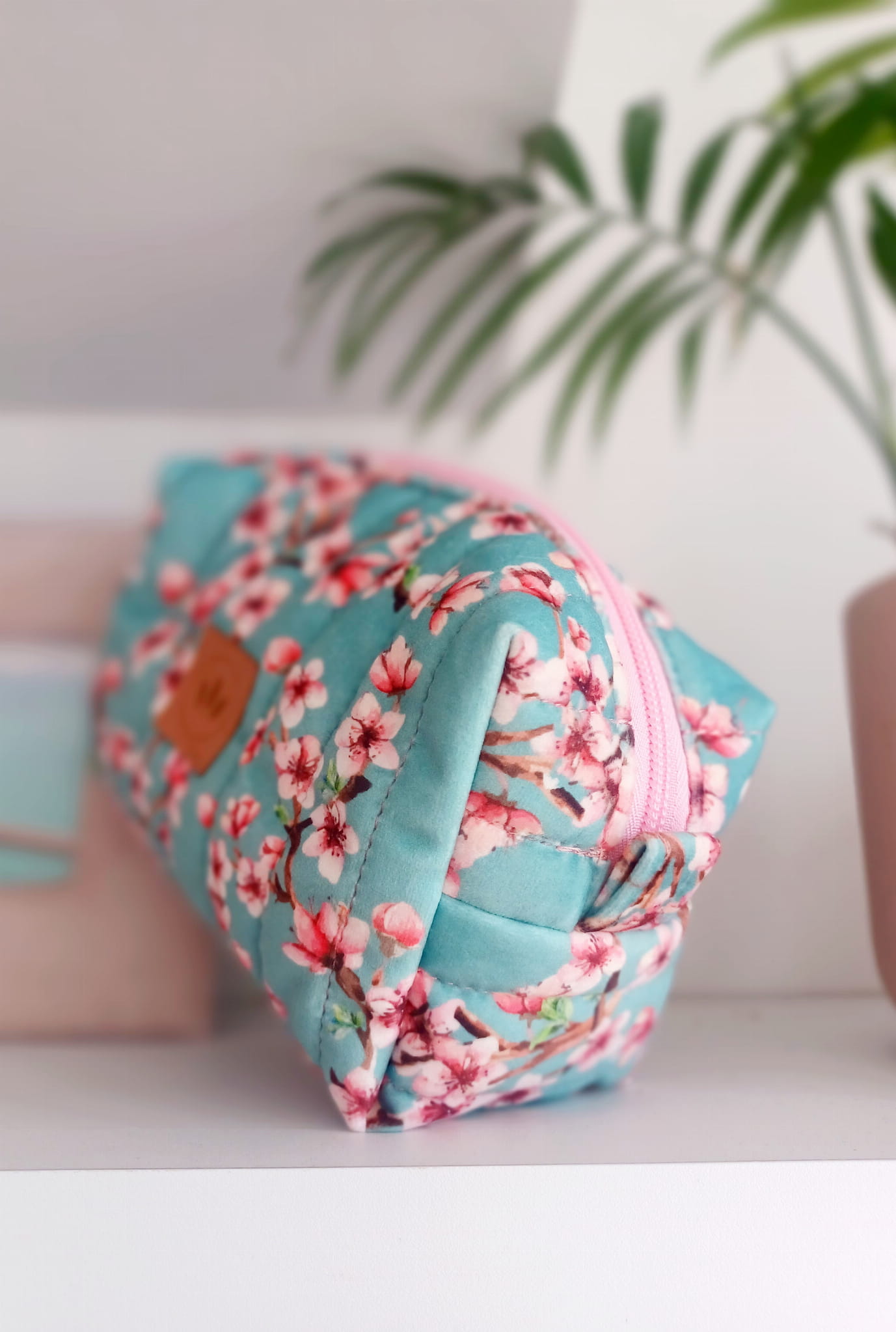 Pikowana kosmetyczka z weluru Kwiatuszki