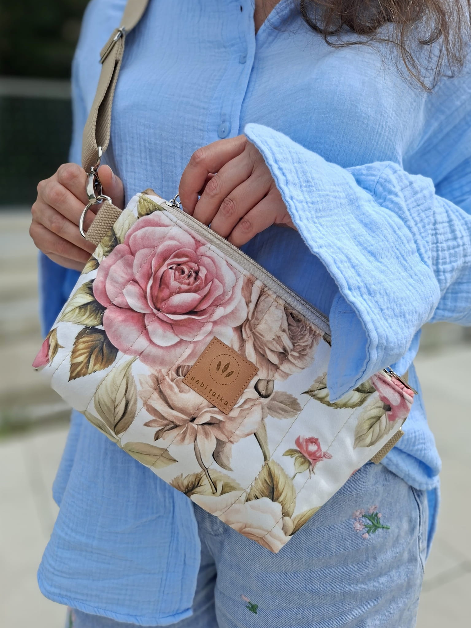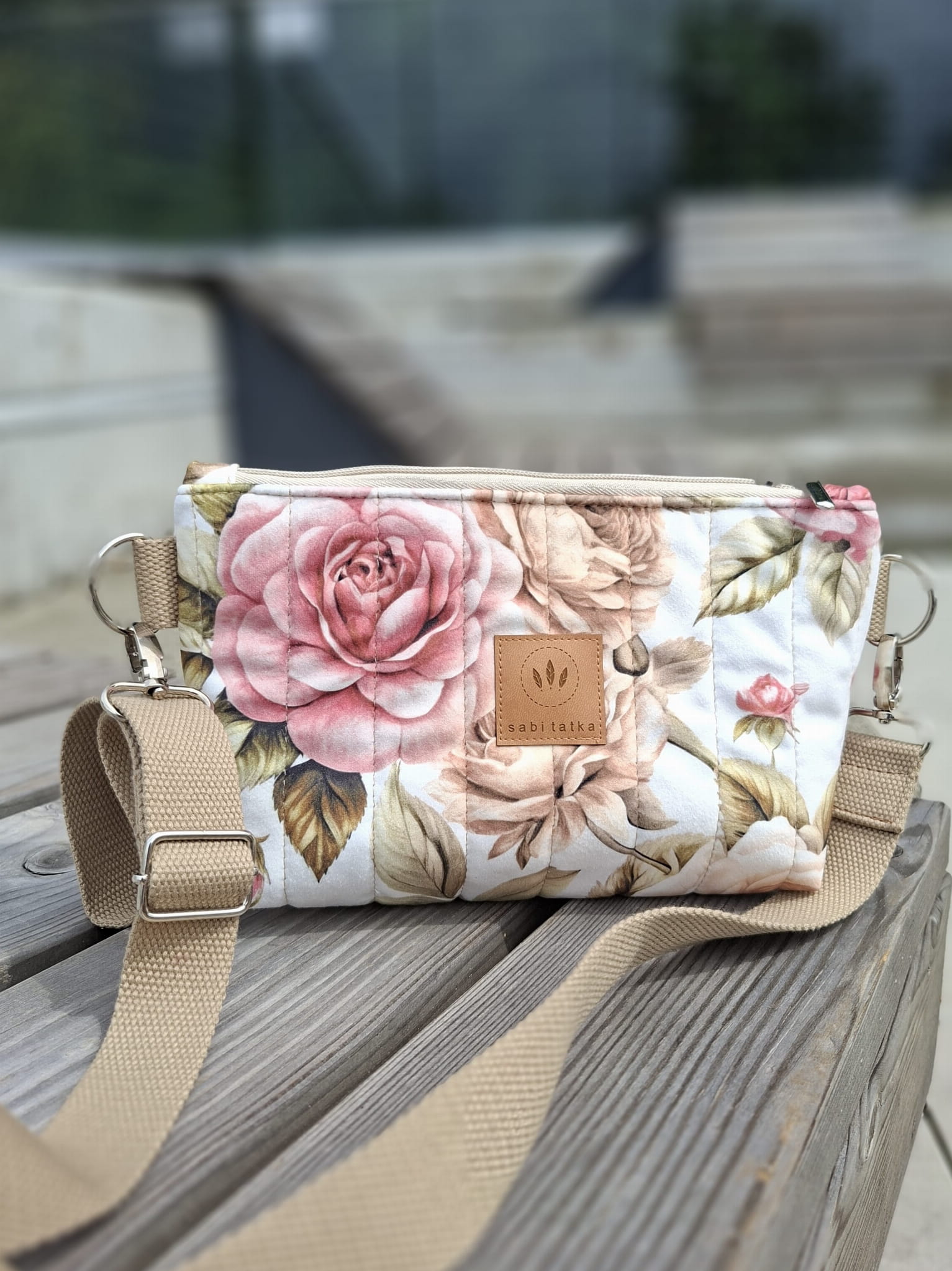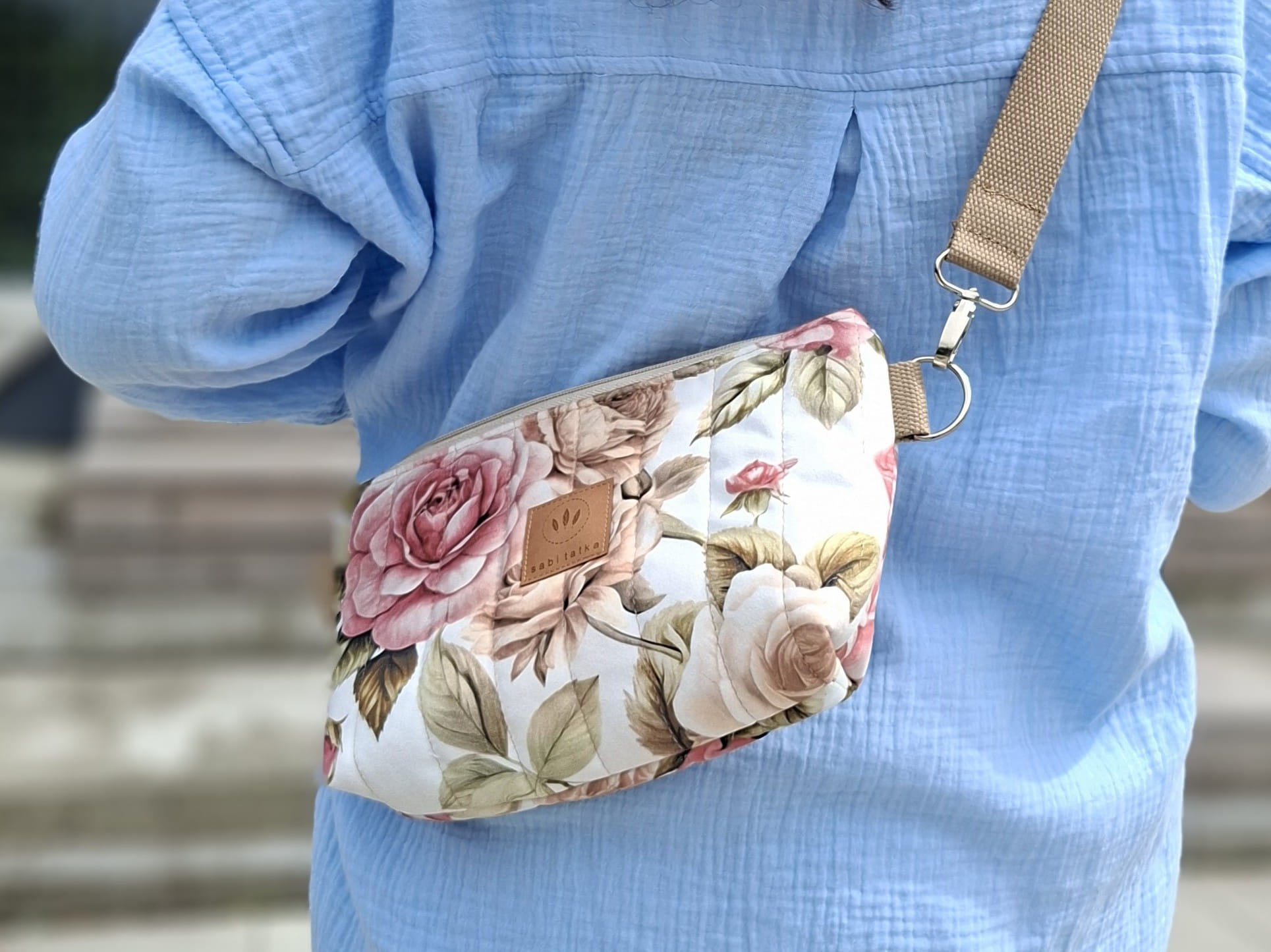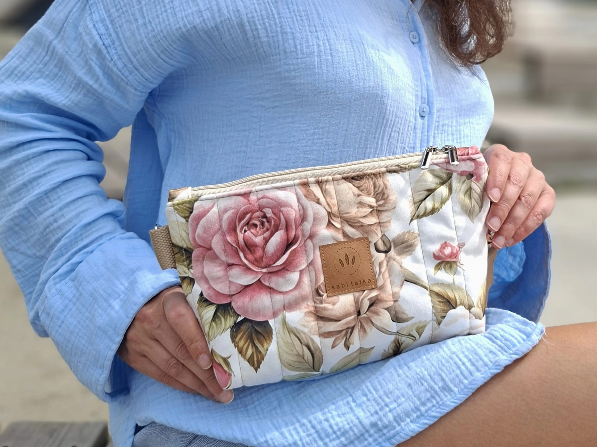 Pikowana nerka z weluru w pastelowe róże Sofia No2