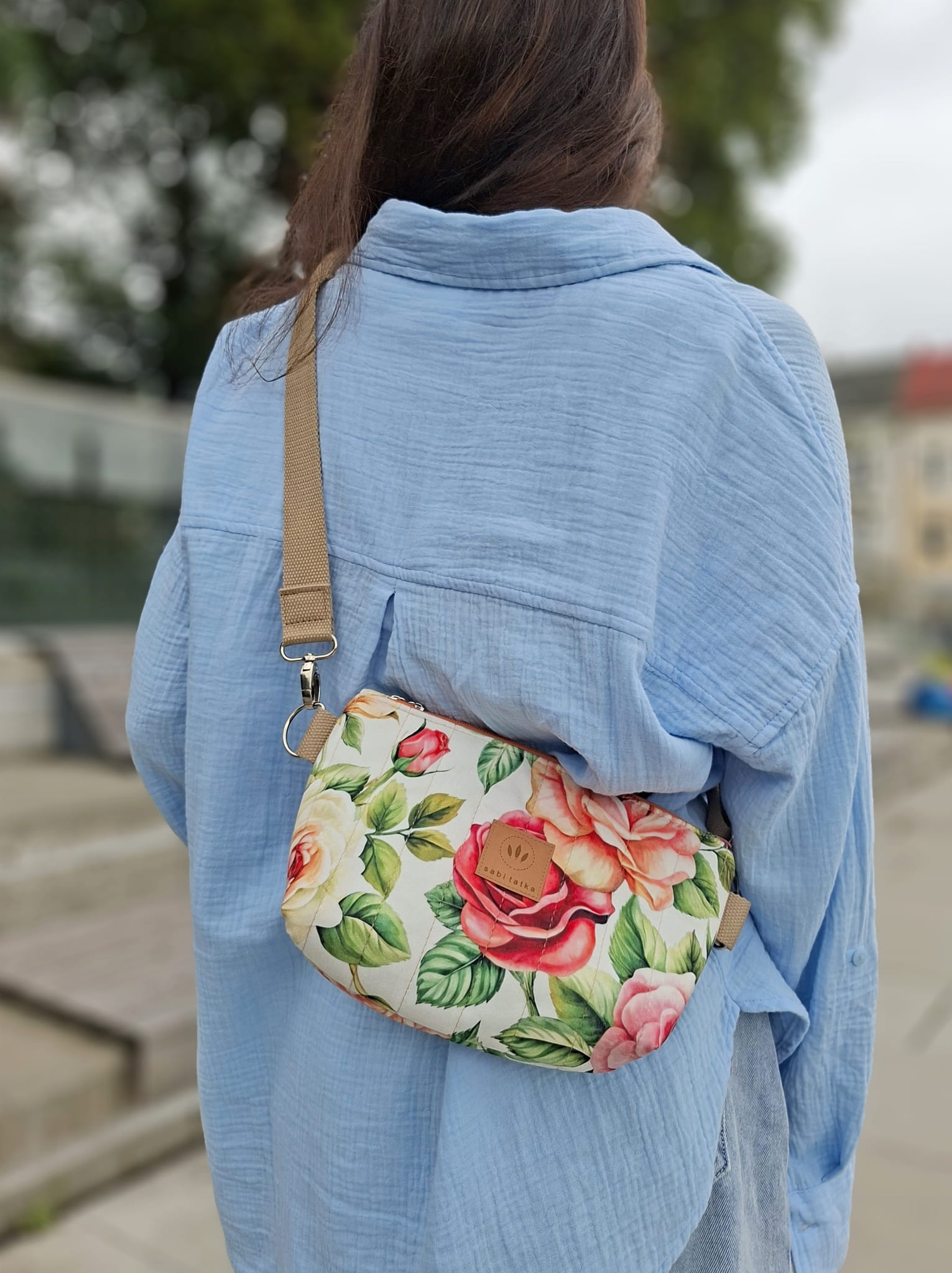 Pomieści niezbędne drobiazgi takie jak klucze, telefon, portfel czy szminkę ale również etui z okularami.