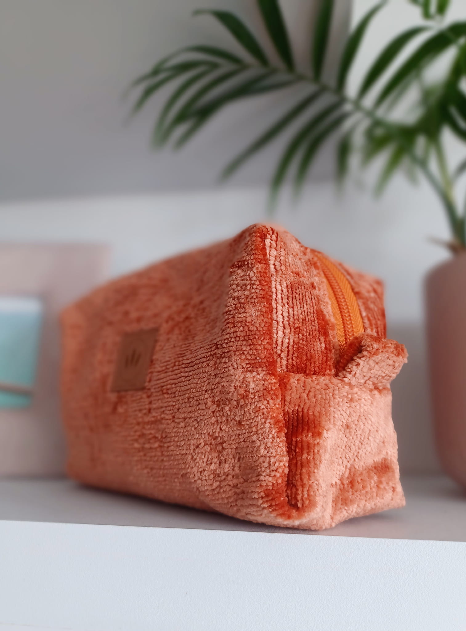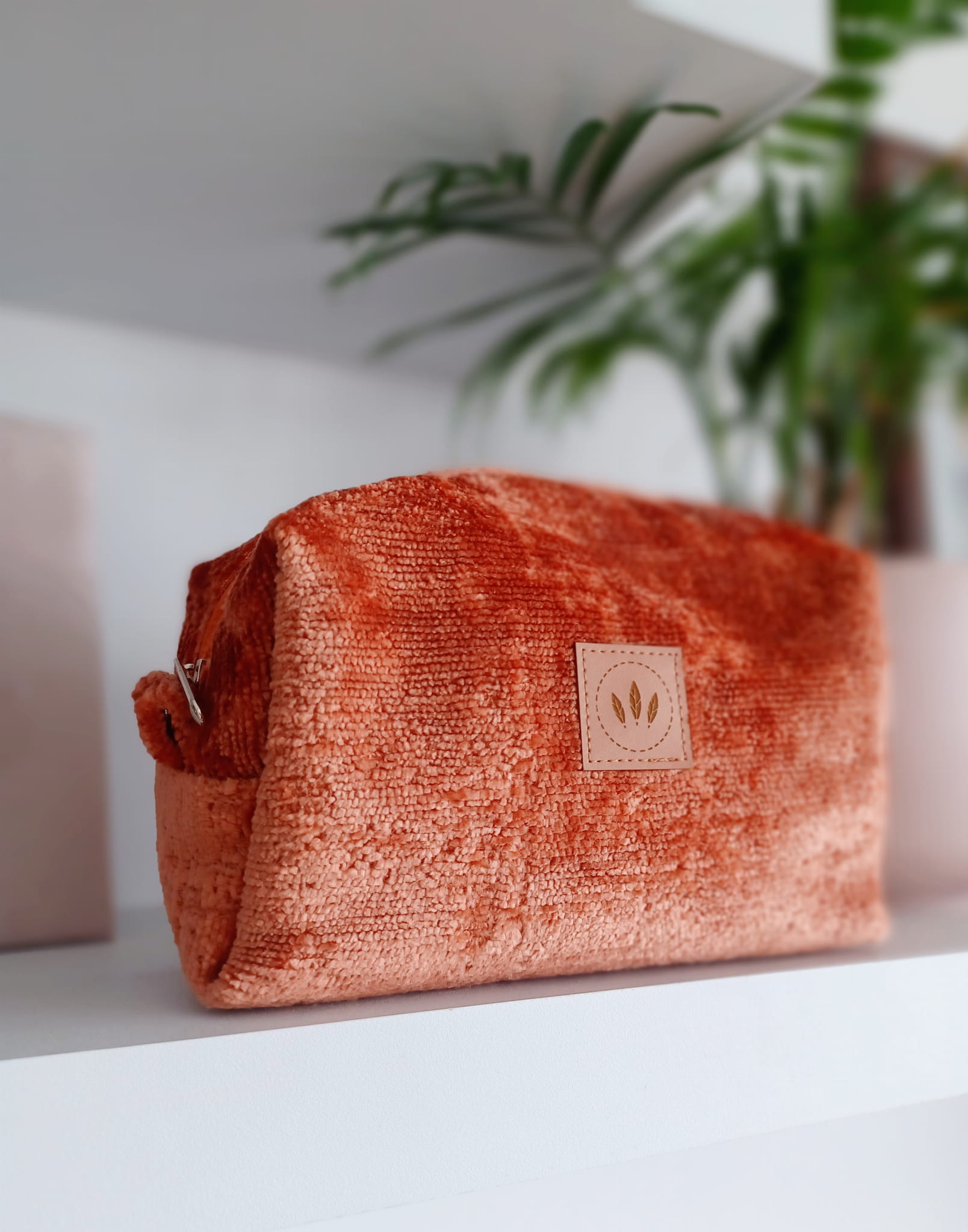Pluszowa kosmetyczka midi Ceglasty Brąz