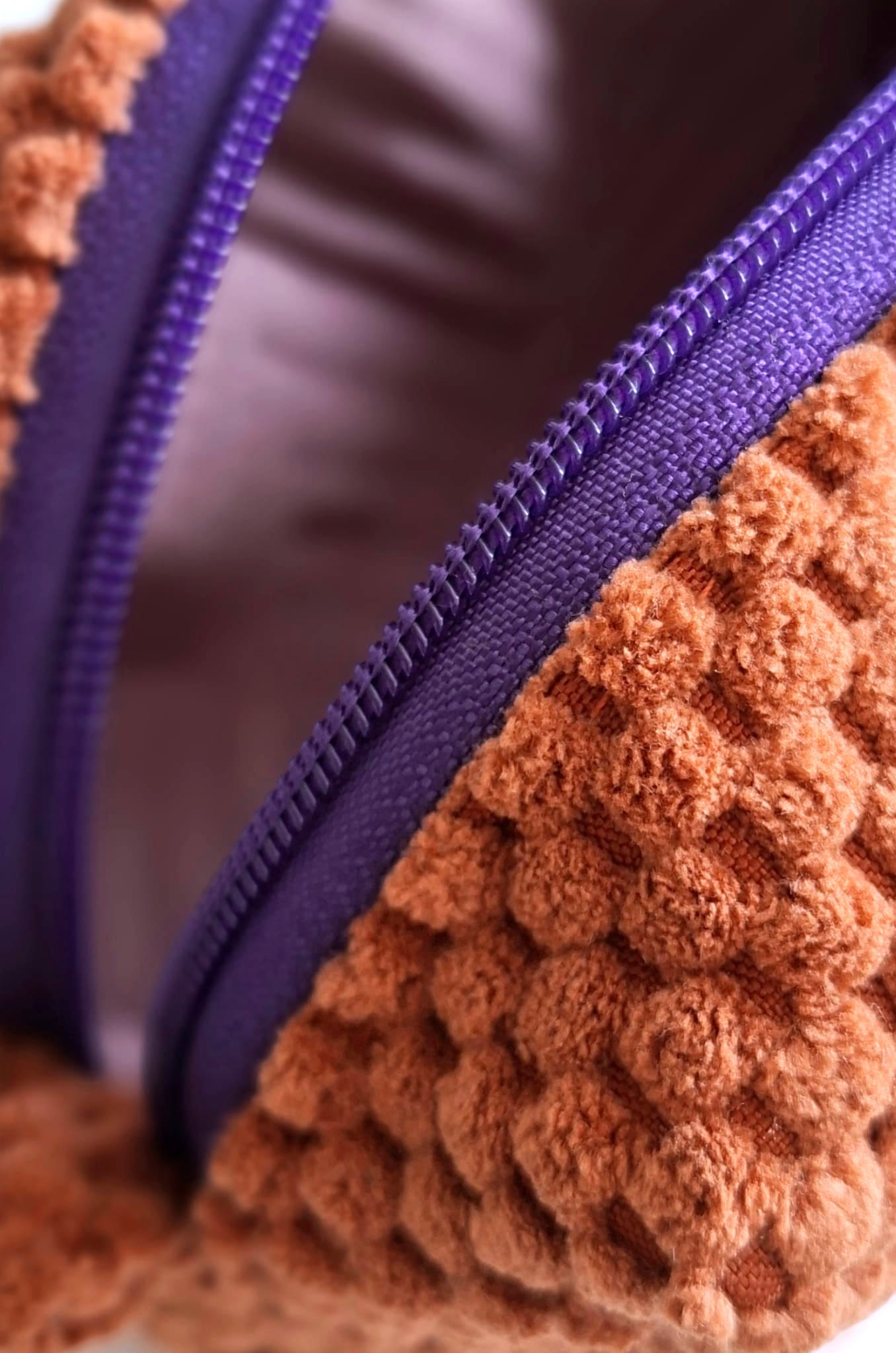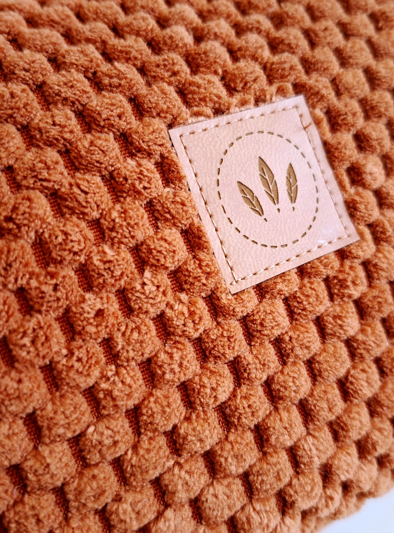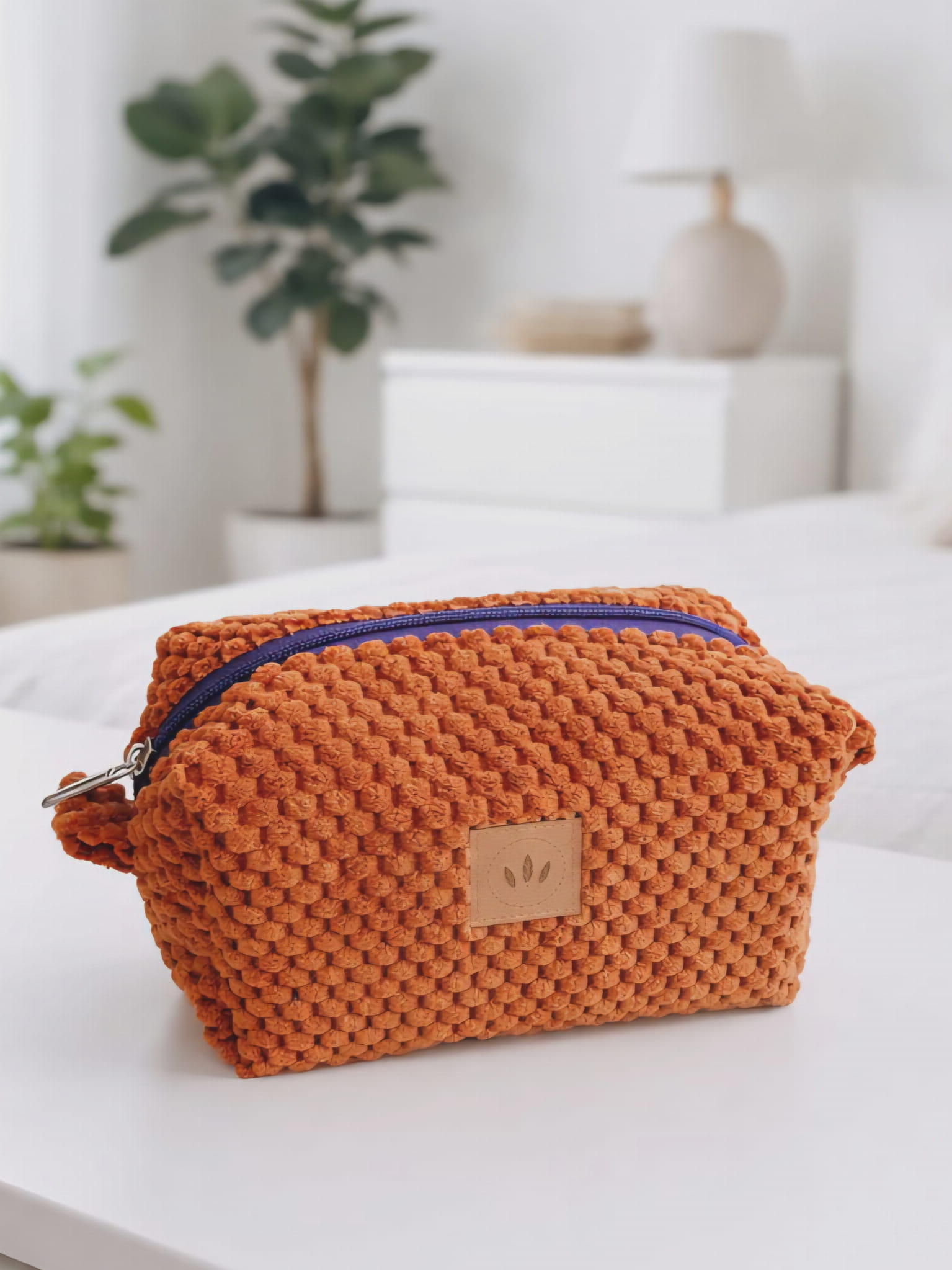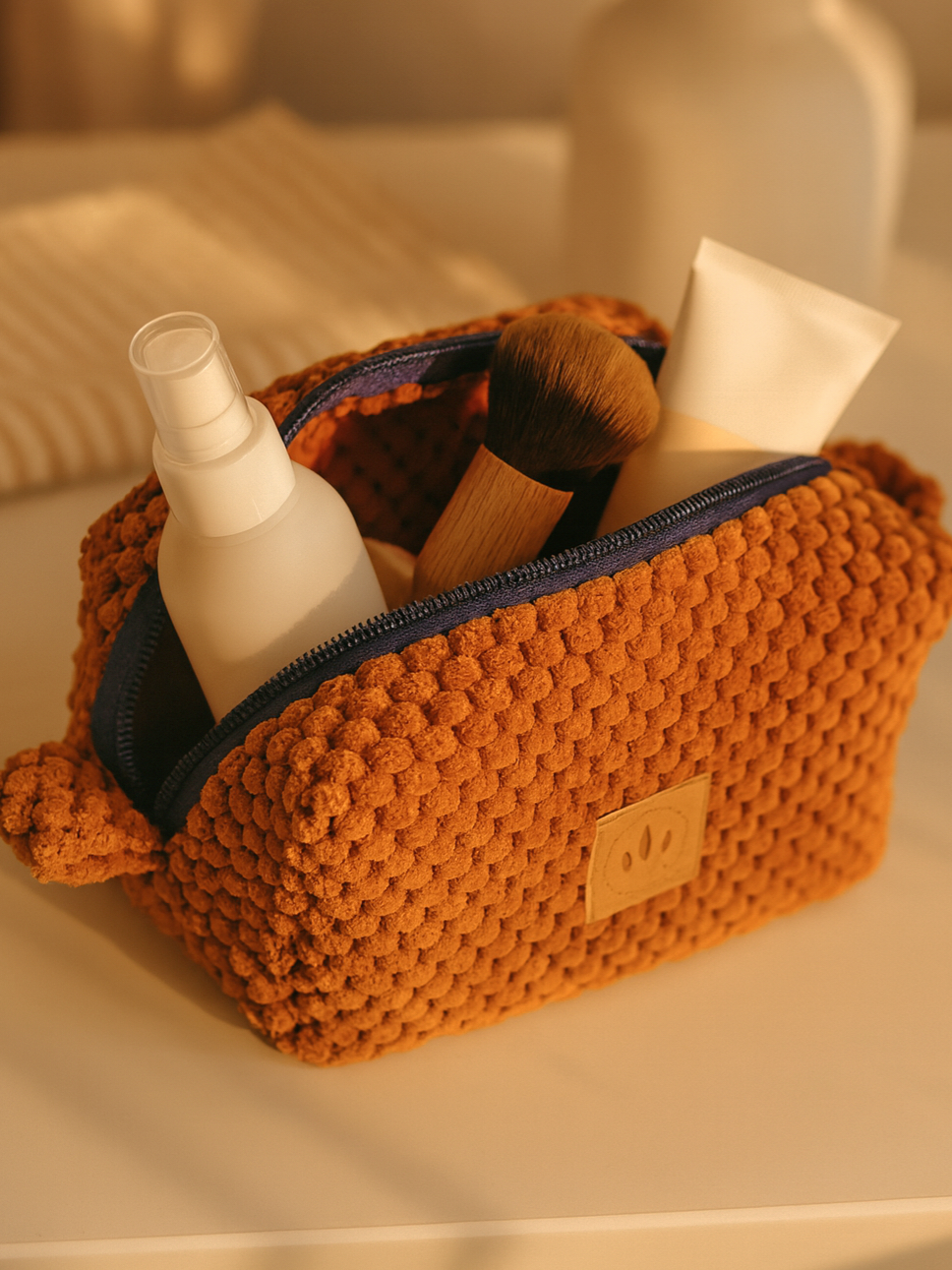 Poznaj wyjątkową kosmetyczkę, która łączy funkcjonalność z niepowtarzalnym designem. Wykonana z miękkiej, przyjemnej w dotyku tkaniny o efektownej strukturze, zachwyca ciepłym, karmelowo-ceglastym kolorem, który pięknie wpisuje się w minimalistyczne i naturalne wnętrza.