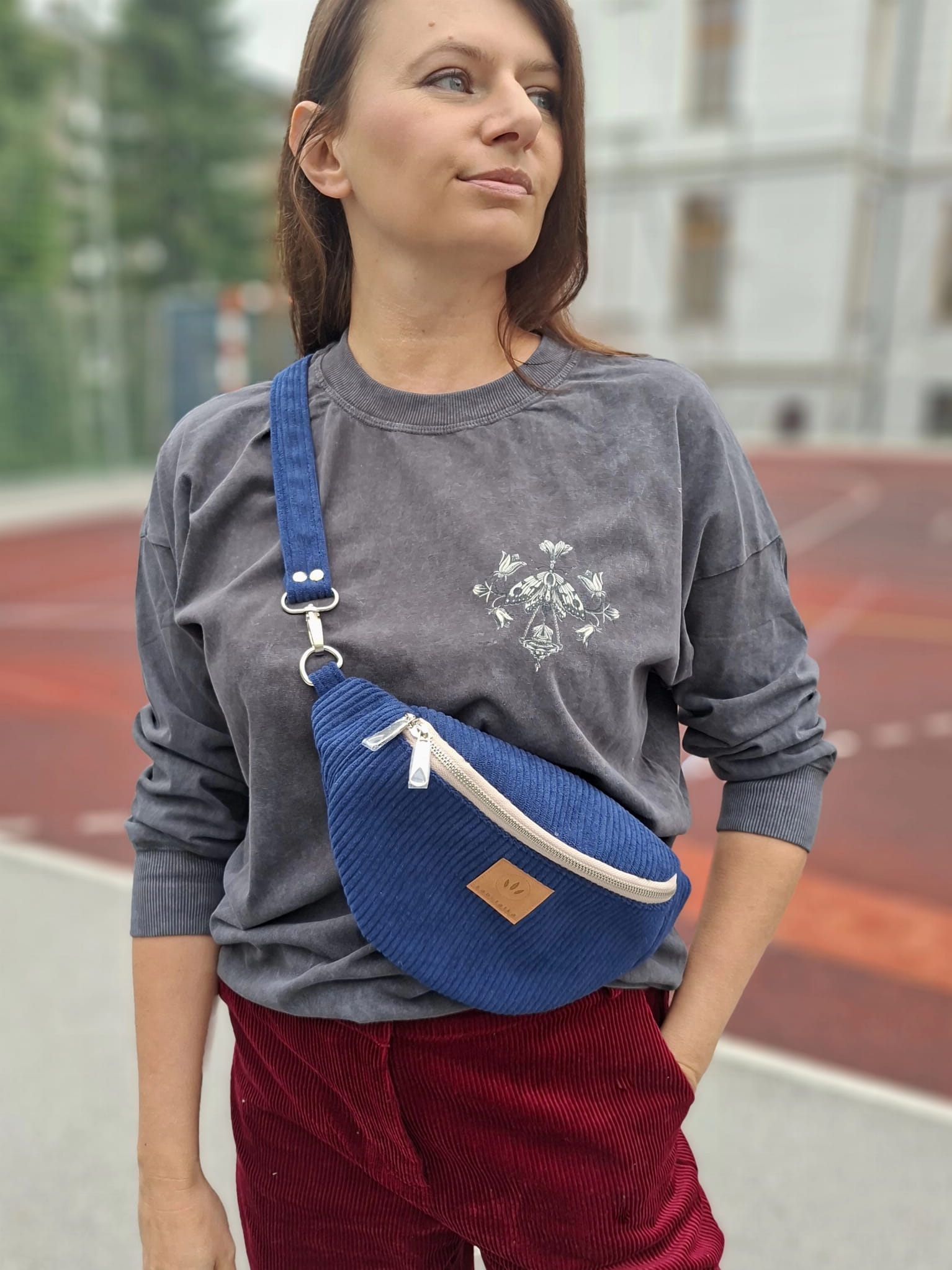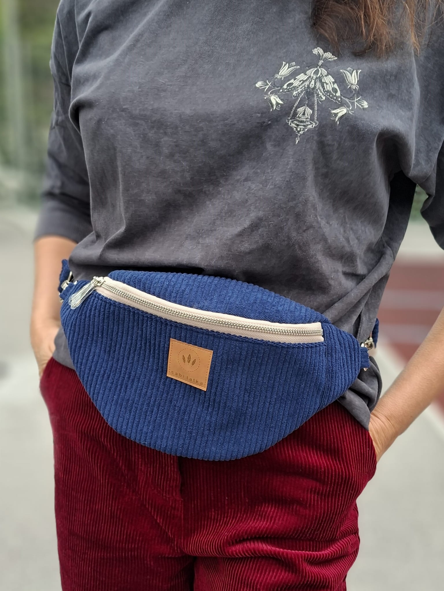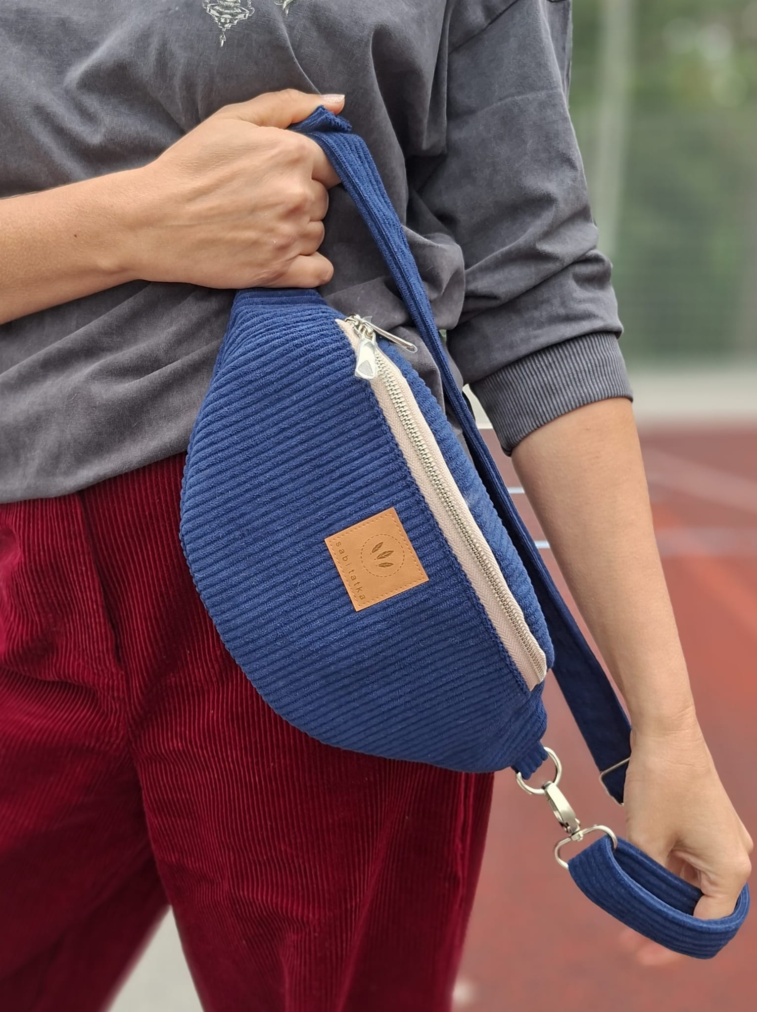 Sztruksowa nerka damska basic Granatowa