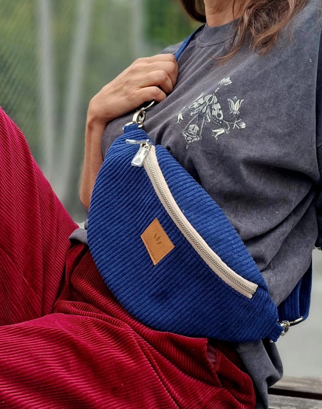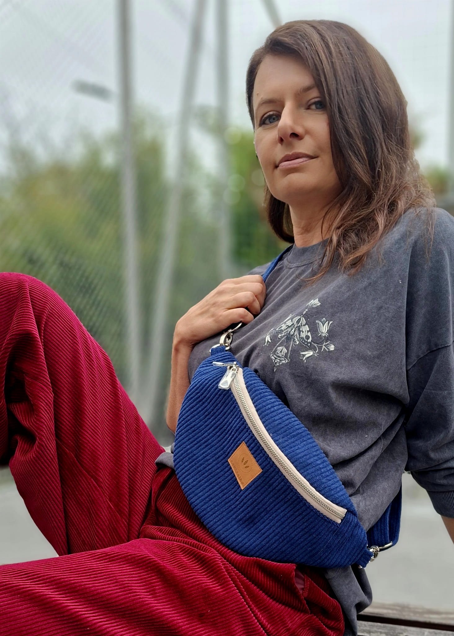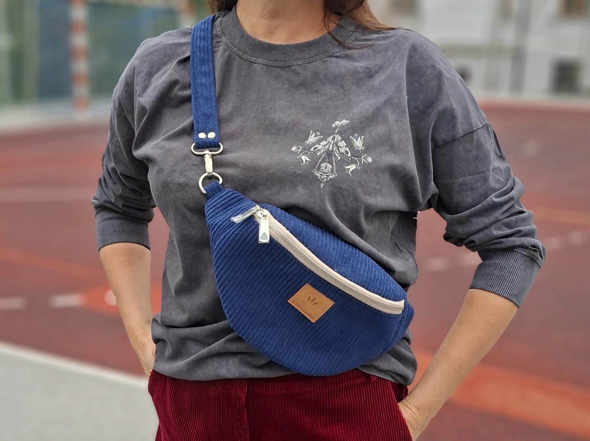 Sztruksowa nerka damska basic Granatowa
