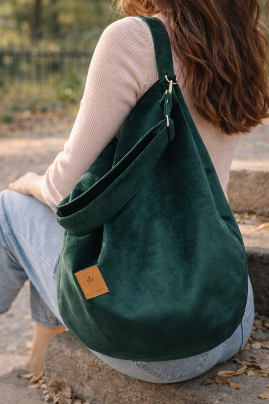 Torba hobo z wodoodpornego weluru Butelkowa Zieleń