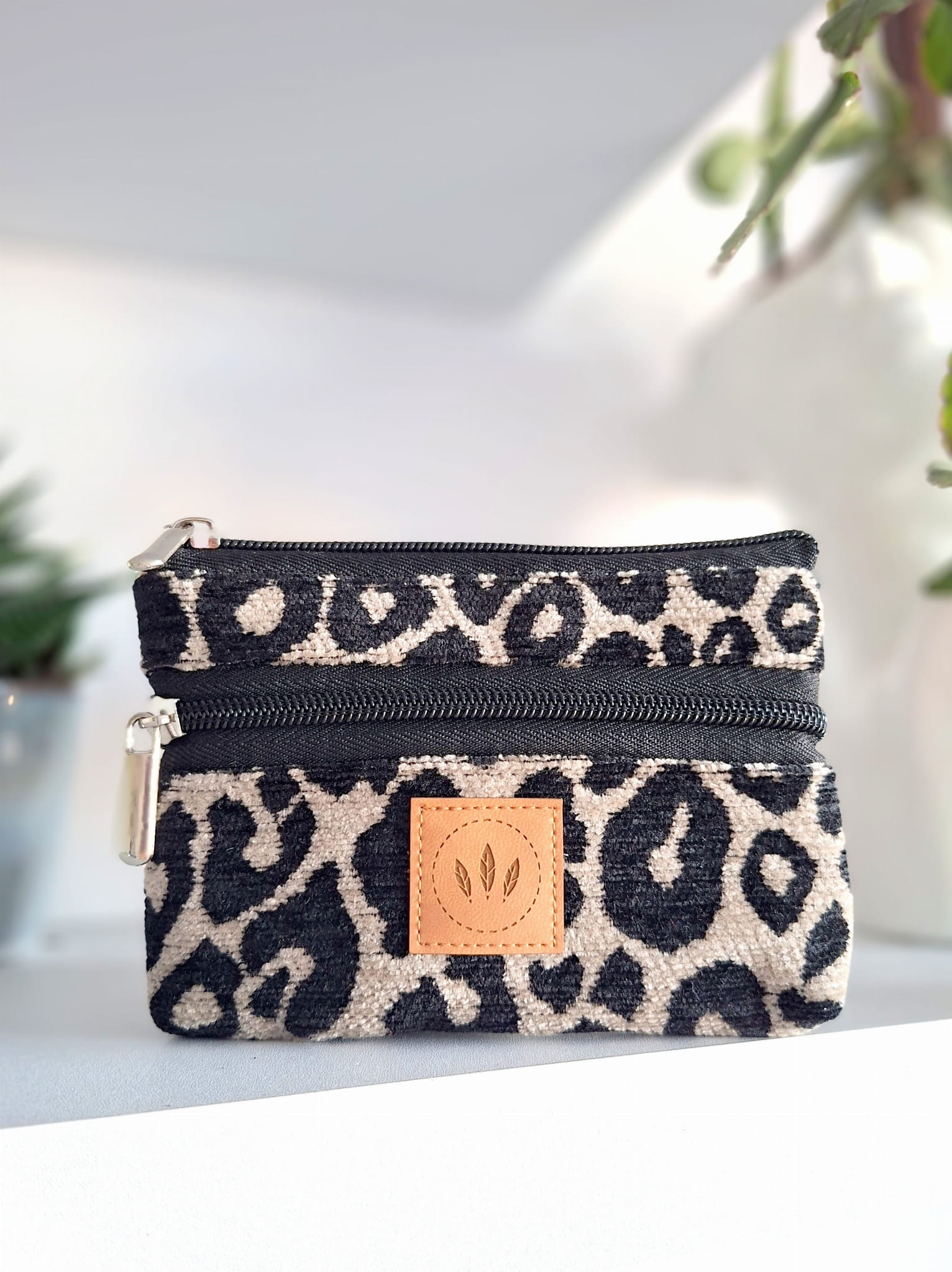 Ręcznie robiony nieduży portfel mieszczący karty, dokumenty i banknoty/drobne. Posiada komorę główną oraz kieszonki na zamek po obu stronach portfela. Idealny w duecie z naszymi nerkami. Nie zajmuje dużo miejsca i jest leciutki. Wodoodporna podszewka zabezpiecza wnętrze przed wilgocią. Zamki w kolorze czarnym.