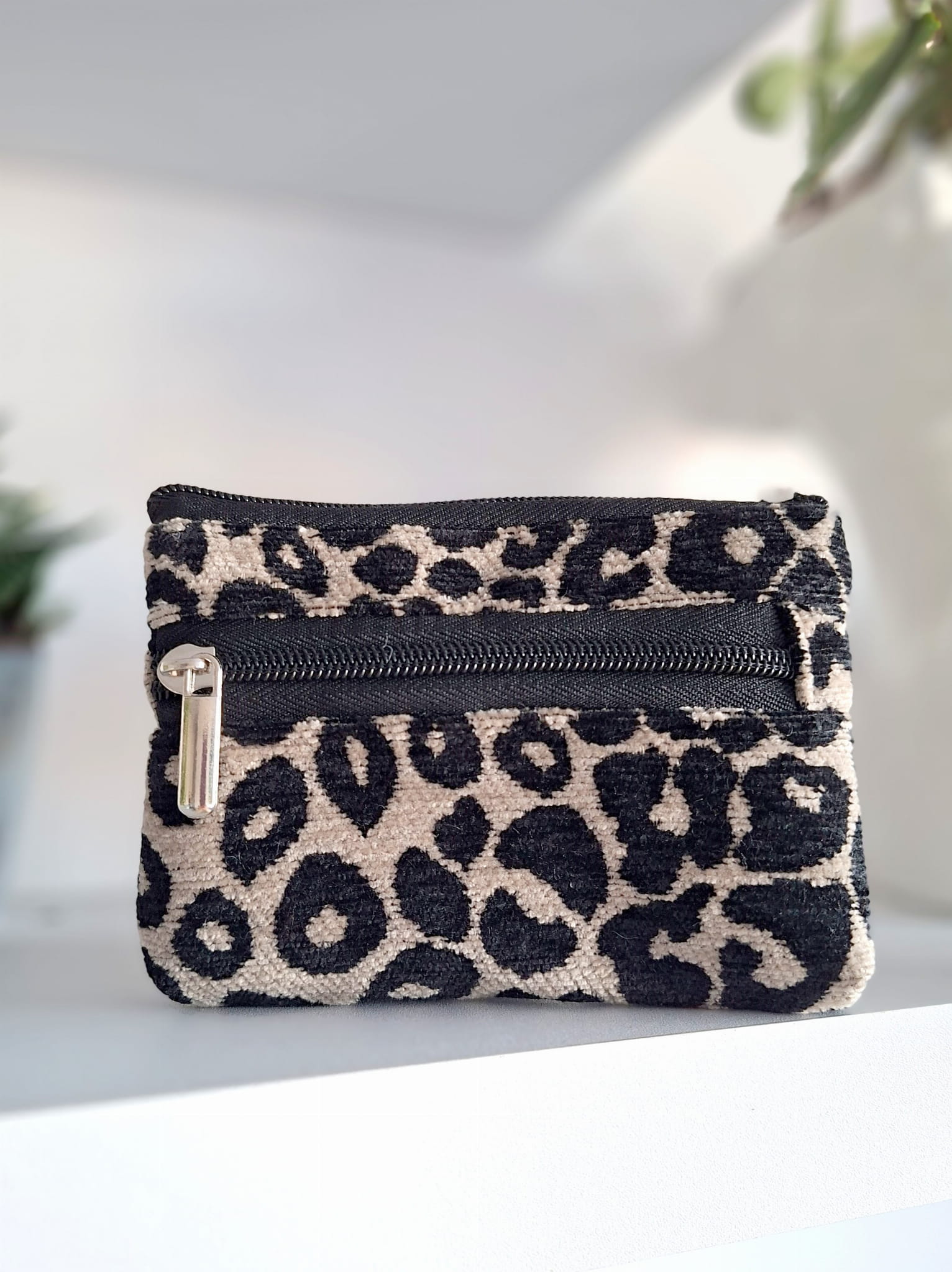 Żakardowy portfel w panterkę Beżowy