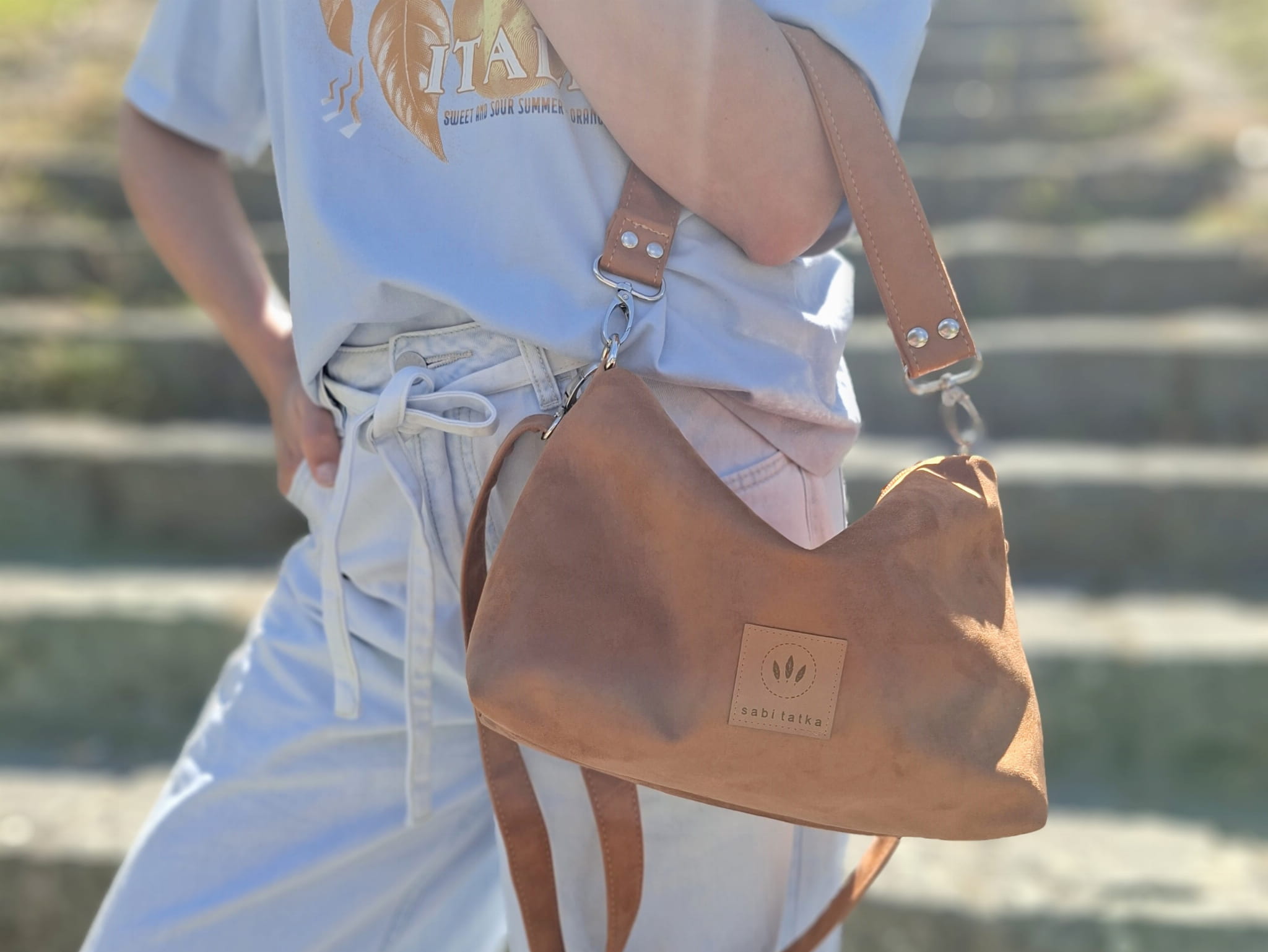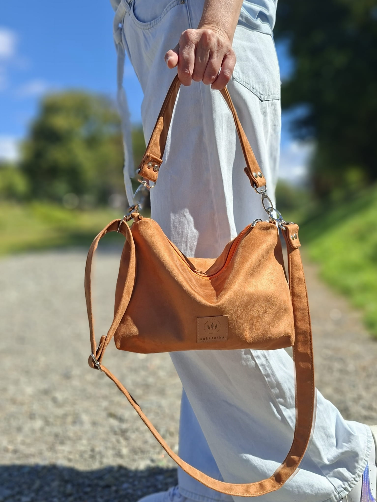 Torebka ma dwa dopinane paski umożliwiające noszenie zarówno na ramieniu jak i na skos.
